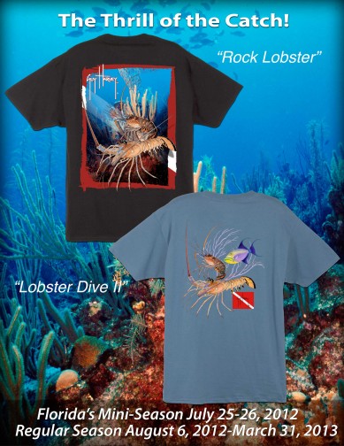 With Florida Lobster Season around the corner (Mini-Season is July 25-26, and Regular Season August 6-March 31) be sure to gear up with the latest lobster tees from Guy Harvey. “Lobster Dive II” is an awesome design, featuring Guy’s brilliant artwork depicting two life-like Florida lobsters and a Trigger Fish. “Rock Lobster” is an ultra-cool tee, combining Guy’s marine photography, and his paintings into one. Both of these lobster tees have dive flags in the art to show everyone that you’re diving for these bugs!